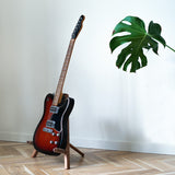 THE Guitar Stand. We set out to make a guitar stand that both looks and functions perfectly - while being as minimalistic as possible. On its own it is almost like a sculpture with the elegant balance and geometry, but while safely nesting your guitar it is discretely taking a step back.