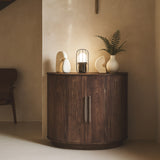 With its sweeping curves and clean lines, The Arc Cabinet stands as both furniture and focal point. The tambour doors glide open to reveal generous shelving, ready for whatever you want to keep within reach yet tucked away.