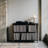 Each partition lifts out in seconds, letting you reshape the bays whenever the mood strikes. The tabletop is perfectly proportioned for a turntable, a lamp, or anything you think deserves the spotlight.