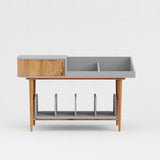 Let`s be honest. Looks and feel is of great importance in our surroundings. Record players, amplifiers, cables, records and other gear has the tendency to clutter up any room. The Vinyl Table offers the perfect solution for a tidy setup. With storage space for around 200 12" inch LPs, a cabinet part to place your receiver or amplifier and a platform to place your deck. The backside of the cabinet has two 60mm holes for cable management to ensure that your setup looks clean at all times. Inside the cabinet there are three in-house 3d-printed cable clips to help organize the wiring.