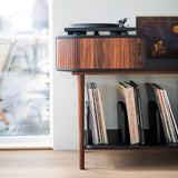 The Vinyl Table is sturdy and lasting, and the elegant and timeless design won’t fight your vinyl collection for attention as much as enhance their appeal.